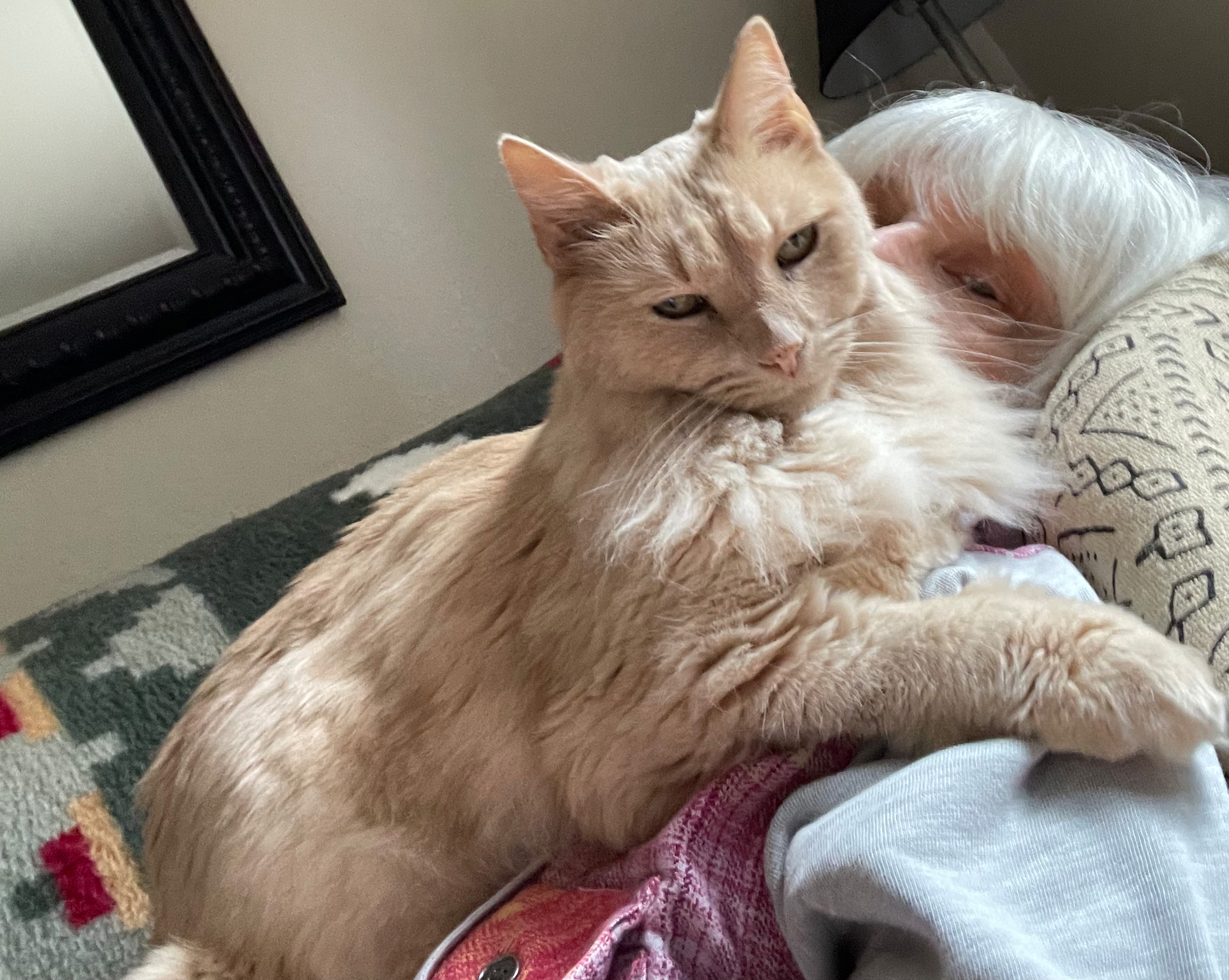 But the hardest thing I’m facing right now is the failing health of my little cat Peach. He’ll be 14 in April and has been a delight since I brought him home from the animal shelter with his equally sweet-spirited brother Mango. Peach has advanced kidney disease. He has good days and not so good days right now. He sleeps a lot on the not so good days. I just love him so much and am going to be devastated when we make the hard decision to let him go. His failing health reminds me that we all have an end date, and we should try to feel joy and gratitude for every day that we are in this world. My loving little Peach has such dignity and is living each day totally present in each moment. He’s inspiring and I can completely relate to his journey, even though my time here will be much longer.