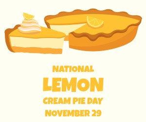 November 29, 2023. My calendar for 2023 has a designation for every day of the year. Some are traditional, some are silly, and I’m pretty sure they are totally made up. Today is the mouthwatering Lemon Cream Pie Day. I like it. Lemon pie is one of my favorites. I’m noting it on my phone’s calendar, so from now on, every November 29th is Lemon Cream Pie Day.
